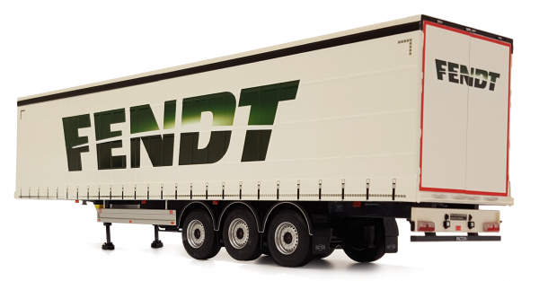 Pacton miniature semi-trailer curtainsides with FENDT livery, 1/32 scale, manufactured by Marge Models. This miniature Pacton semi-trailer is compatible with Marge Models 1/32 scale solo tractors.